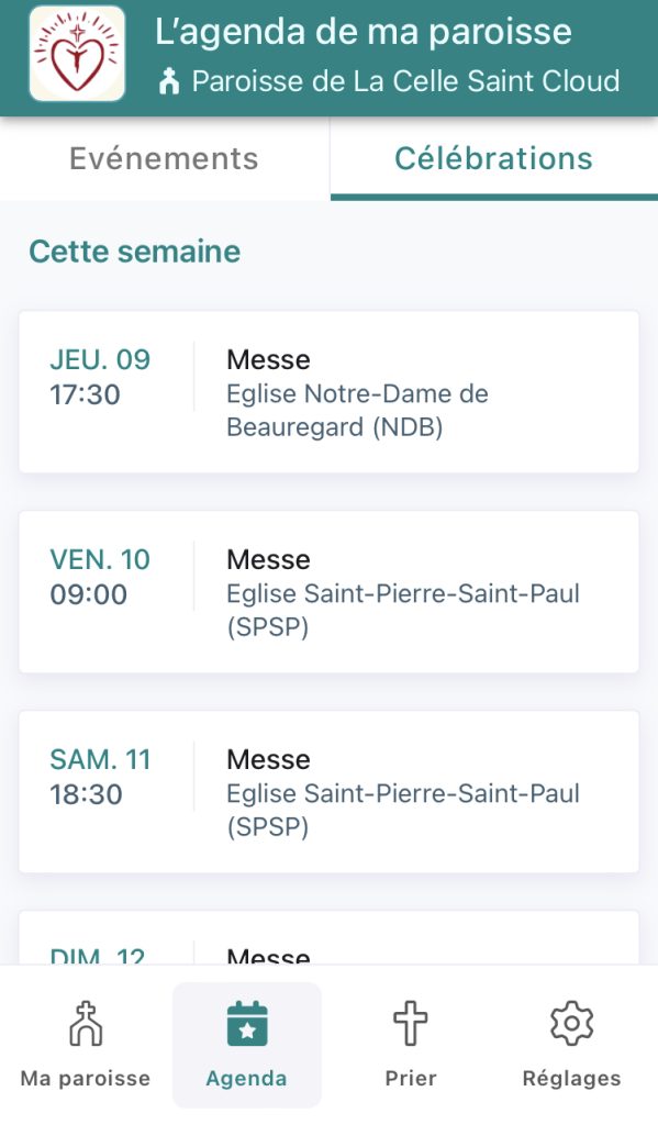 • Vous pouvez ajouter d’autres paroisses, par exemple si votre paroisse de vacances l’utilise aussi.