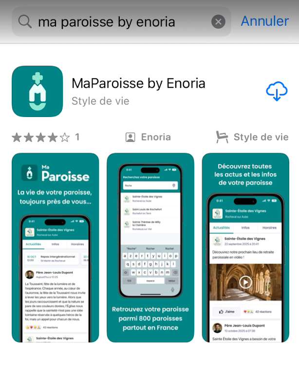 • Chercher « MaParoisse par enoria » et l’installer