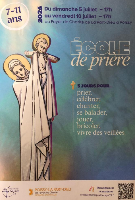Le diocèse de Versailles organise une « école de prière » : – pour les enfants de 7 à 11 ans, – du dimanche 5 juillet au vendredi 10 juillet – au Foyer de Charité de La Part Dieu à Poissy. – Thème : “Les Cœurs de Jésus et de Marie”. Accompagnés par le père Thibault Sajous, […]